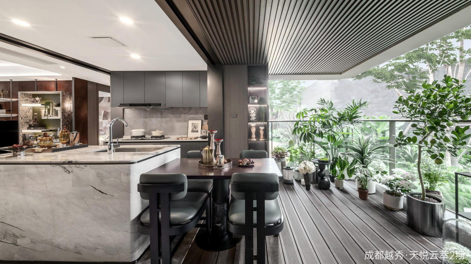 在此基础上,越秀地产中西部区域始终围绕两个核心锚点展开,进一步凝练出承载情感的空间模块:一是对家庭关系场的深度解构;二是对属地文化基因与当代生活趋势的融合创新。这种双维驱动,让标准化模块在不同城市土壤中生长出独特的生活场景。以“恋人主卧”为例,其本质是对都市精英情感沉淀需求的回应,在成都天悦云萃2期项目中,他们将主卧与阳台重构为“私语容器”,有了阳台便有了一丝应景的浪漫,让人联想到「朱丽叶的阳台」,而它正是爱情与恋人的象征。