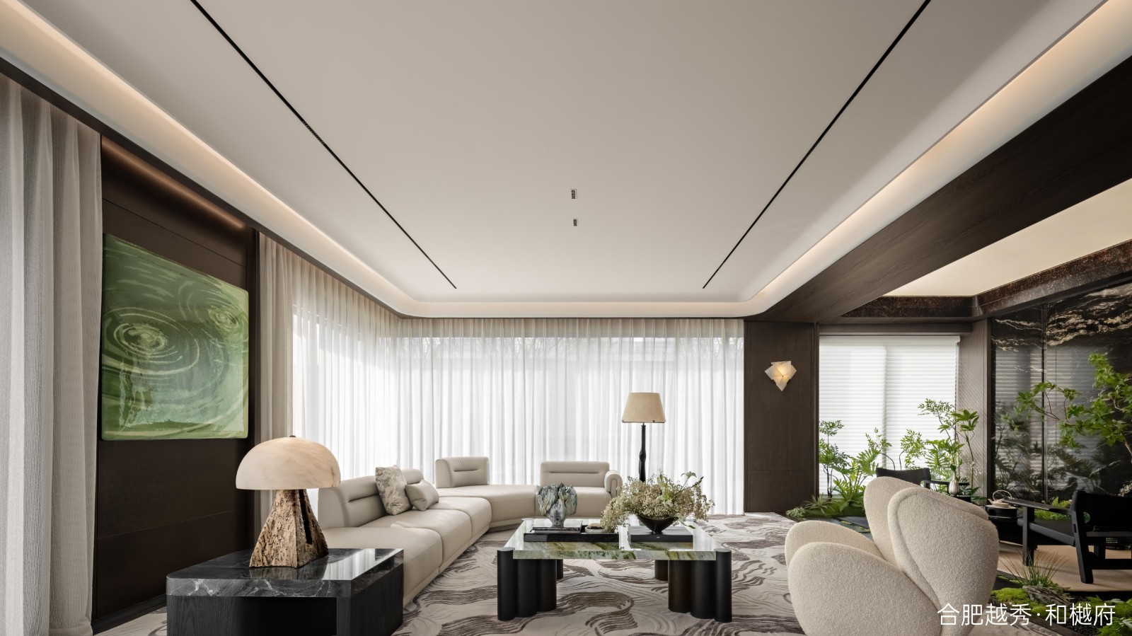 生活不是一成不变的,它随着时代的脉搏而跳动,随着个体的成长而变化。因此,越秀地产中西部区域建立这个模型的出发点,是希望为每一个阶层、每一个阶段的人,找到属于他们的生活节奏,而不是单方面地给他们规定一种范式。所以,【熟人社区—隐奢—达观】的背后,是他们对当下城市生活方式的理解,但绝非一成不变的公式。它是一个动态的、可进化的模型。例如在合肥的滨湖板块,面临观樾项目所匹配的城市事业成功人群,越秀地产中西部区域以明代“坐隐园”为原型,借三进式庭院围合禅意栖居,打造「大隐隐于市」的生活场景,凸显达观的人生态度。然而,在相邻的地块,结合在地十五里河生态景观与滨湖森林公园等天然环境,他们选择将越秀「自然主义」发挥到极致:除外部天然优越环境,越秀·和樾府深植地域文化根脉,从新安画派名家祝昌的《山水图》中汲取灵感,提炼“山、林、泉、石”等经典元素,构建“五境十二景”,打造“前院洗尘、后院静心”的三重归家礼境,也是一半公园一半城最好的诠释。
